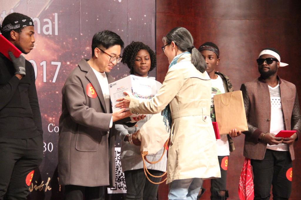 决赛共分两轮,第一轮由评委从十一组选手中评选出5组选手进入第二轮PK。2016级创业教育硕士韩国籍学生YUSEOK CHOI以一首抒情歌曲《Good Bye》征服全场,仿佛一幅小清新的画面映入听众脑海。2017级生物技术专业安哥拉籍学生JENIFFER PRISCILA DA CUNHA TAVIRA的歌曲《Abandonada》清脆悦耳,歌声嘹亮,赢得阵阵掌声。进入第二轮PK的五组选手实力相当,2016级电子信息科学与技术专业几内亚籍学生FOSSE KOIVOGUI和赞比亚籍学生MWANAMBUYU带来精彩的街舞组合,ANIEKE IFEANYI DAVID以一首《I’m a boss》赢得满堂喝彩,斩获决赛一等奖。2016级工商管理专业学生NATALIE观看比赛后说:“决赛真的非常精彩,我的朋友也参加唱歌决赛,我觉得他唱得很好。而且我们很期待明年的十佳歌舞大赛,感谢学校给我们国际学生提供展示才艺的舞台。”