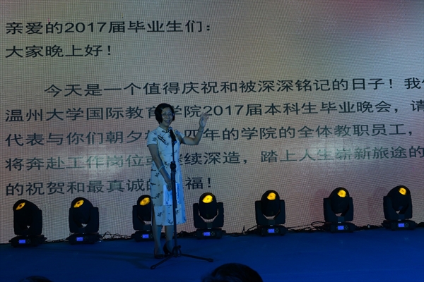 叶苗在欢送会上致词。她祝福全体学生顺利毕业,祝贺近20名获得华威、诺丁汉、曼切斯特等世界名校OFFER以及获得省级优秀的毕业生。她希望,中外毕业生们在中国“深度拓展一带一路”和“建设命运共同体”时代背景下,要树立与这个时代主题同心同向的理想信念,勇于担当这个时代赋予的历史责任,不忘初心、找准人生航向。国际毕业生要成为宣传中国、宣传温大的友好使者,为中外交流做出应有的贡献。