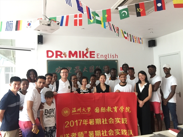 暑期的骄阳似火,海角视频 的16名国际学生,在院长叶苗教授、党总支副书记陈文远及学生科老师的带领之下,走进Mike英语培训公司开展暑期社会实践活动。公司负责人林速女士及其他工作人员热情接待了叶苗院长一行。