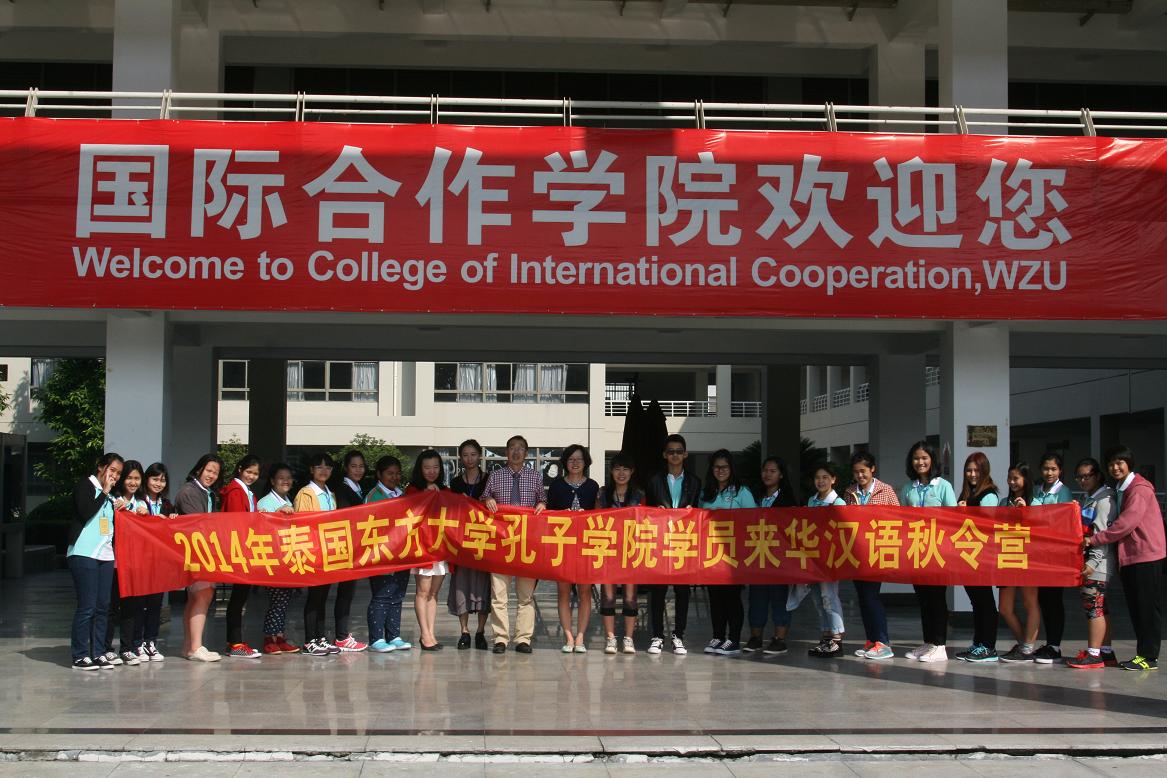 2014年10月13日上午9点,泰国东方大学孔子学院学员来华汉语研修秋令营在南校区9号楼准时开营。国际合作学院院长严晓鹏博士、东方大学孔子学院中方院长陈素云老师出席此次开营仪式,国际合作学院的教师代表以及20位营员共同参加了此次开营仪式。仪式由学院学生科留学生事务主管刘建东老师主持。