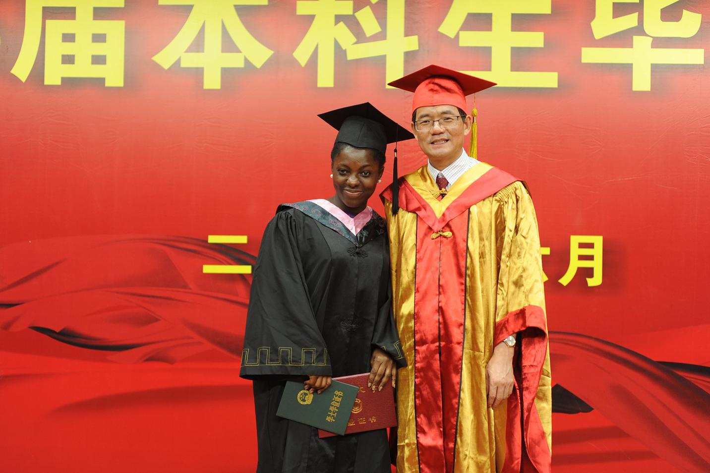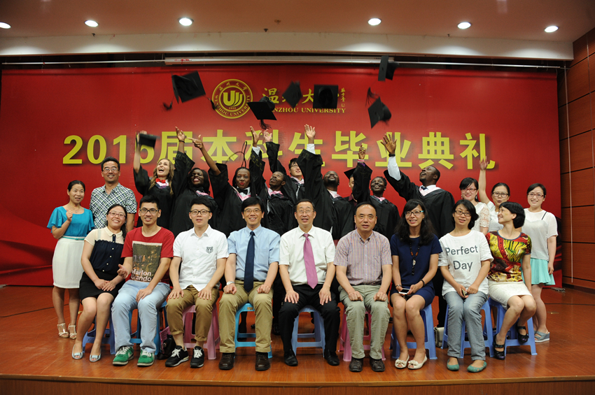 2015届留学生毕业典礼在岩松堂雁山厅隆重举行。校长蔡袁强教授为留学生毕业生颁发毕业证书和学士学位证书,典礼由国际合作学院副院长陈军主持。