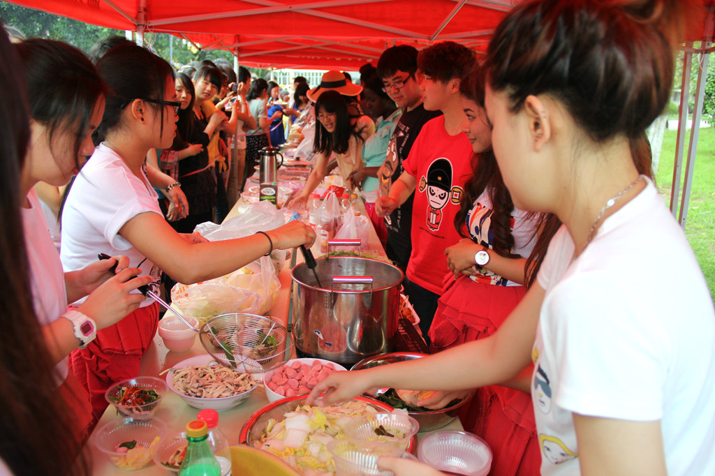多国文化节是我校留学生一年一度的传统活动,是他们展示各自国家文化特色、增进交流的重要平台。今年,在学区制改革的背景下,第四届多国文化节活动走进了步青学区,来自18个国家和地区的100多名留学生齐聚步青学区华表广场,通过知识竞猜、文艺汇演、美食展示等多样方式,为学区同学带来了不一样的国际化气息。步青学区党总支书记周东,国际合作学院院长严晓鹏、党总支书记朱建平出席并参与了此次活动。