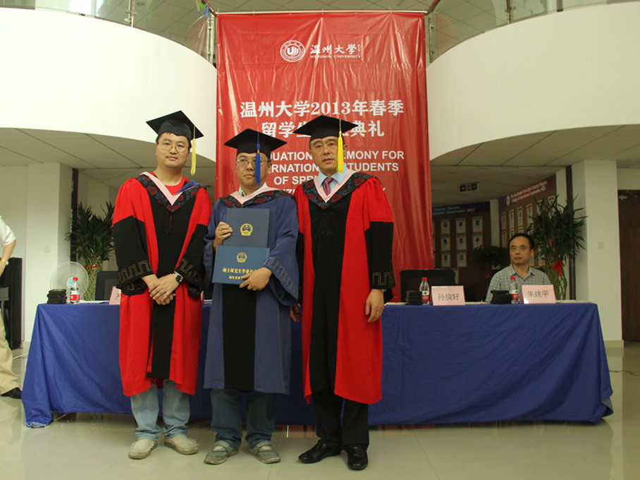 办学历史上第一名外籍硕士研究生,具有里程碑式意义,这是我校在教育国际化道路上迈出的重要一步。他希望留学生们能利用自身的优势,成为自己的祖国与中国长期交流的使者,并勉励他们回国后继续学习中文,学习中国文化,为两国间经济、文化的交流做出更大的贡献。
