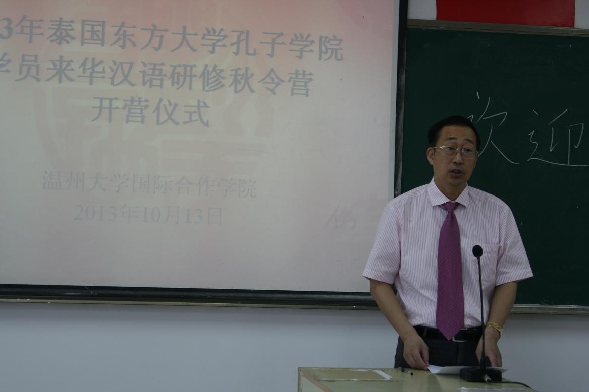 和泰国东方大学的合作历史,并特别引用了李克强总理在泰国国会上发表的“让中泰友好之花结出新硕果”的演讲,表示要贯彻李克强总理的讲话精神,认真办好本次秋令营,为中泰教育文化交流做出贡献。