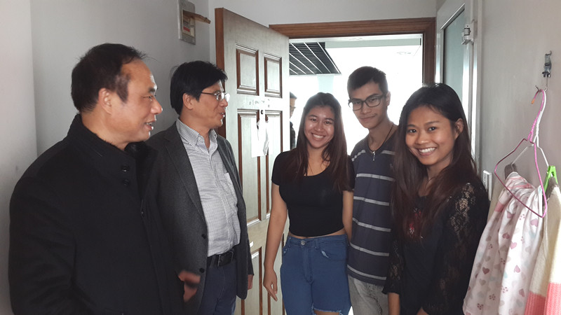 泰国留学生们刚刚安顿,国际合作学院领导第一时间来到宿舍看望这批新生。他们详细询问新生们是否适应温州的气候,对饮食、宿舍条件是否满意,鼓励泰国同学多与中国学生沟通交流,尽快融入这个大家庭。希望泰国留学生们好好学习,学有所得,学以致用。泰国学生对学院的细致安排和热情慰问十分感动,他们表示会珍惜在海角视频