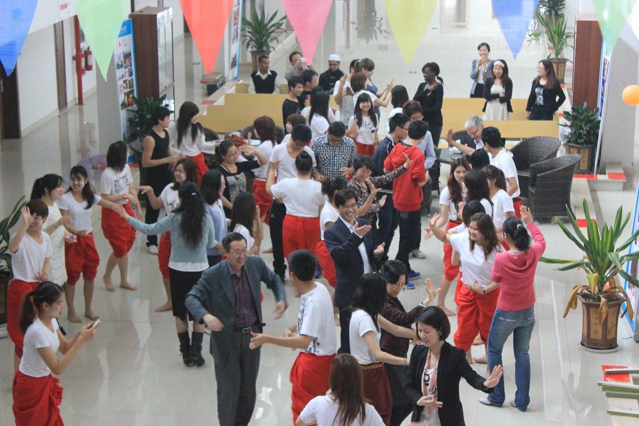 在陈军副院长和外事处叶苗副处长的祝福词中,本次宋干节活动拉开了帷幕。活动中,泰国留学生动听的新年歌,动感的传统舞蹈,赢得了阵阵掌声;宋干节洒水祝福仪式,师生之间,同学之间互送祝福,整个活动现场温馨祥和。泰国互动舞蹈更把活动推向了高潮,师生联动,传递祝福与感动。