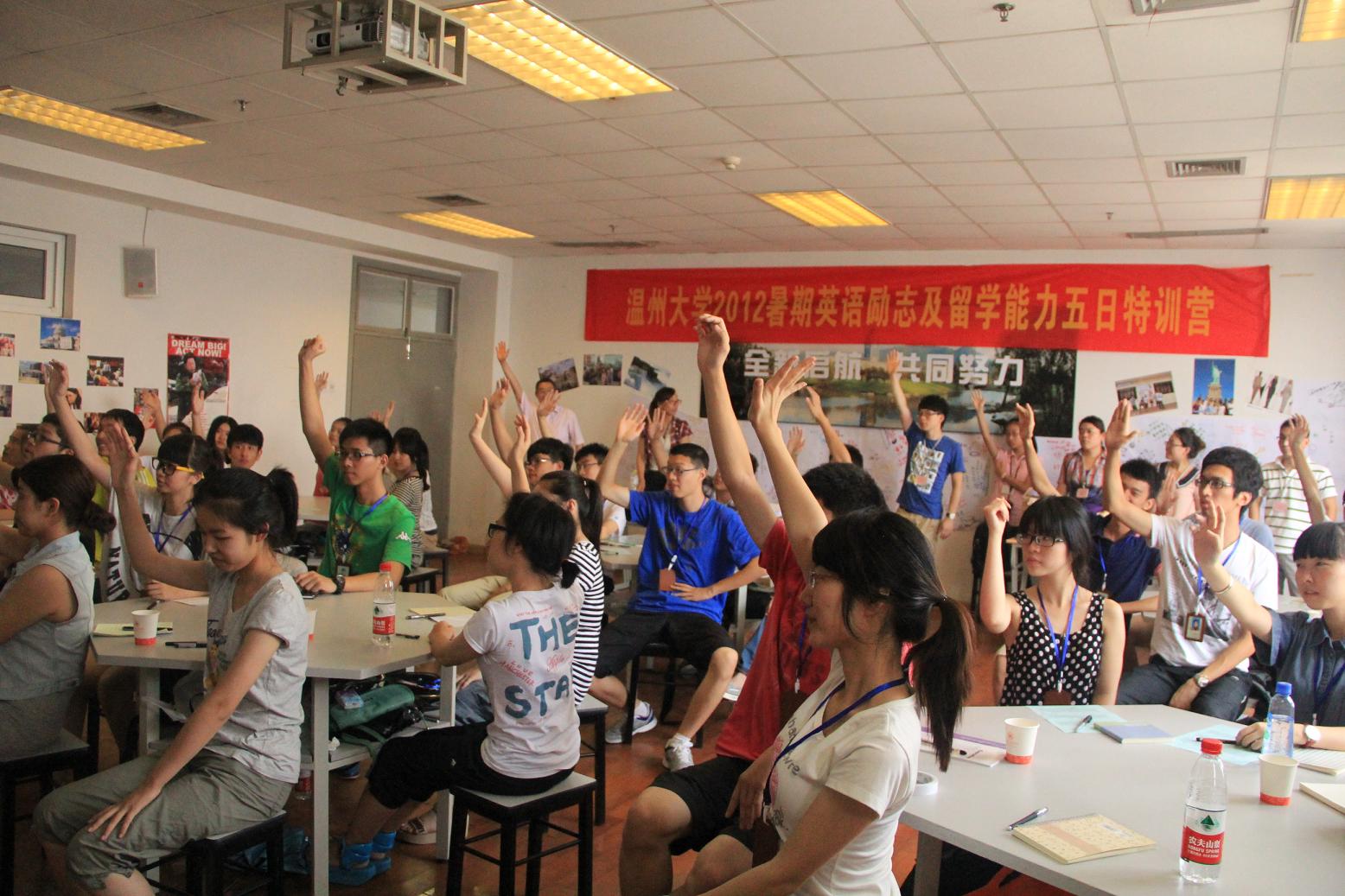 国际合作学院举办的“2012年英语励志及留学能力五日特训营”在学院路校区开营。开营仪式由李阳疯狂英语首席教学总监张建芳老师主持。