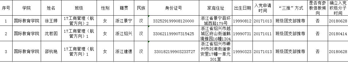 经团支部推荐,海角视频 学生党支部考察,拟确立徐王婷等3名同学为发展对象(具体名单如下),如对这3名同学的确立问题有异议,可在公示期内向学院反映。公示期为2020年5月19日至5月27日,联系人:吴老师,电话:86595093,办公地点:3-225。