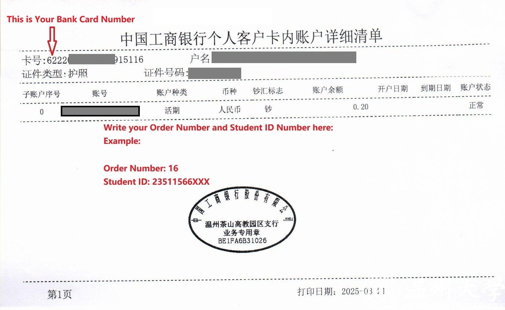 2. 学生必须使用本人的银行卡,不得借用他人银行卡。Students must use their own bank cards and are NOT allowed to borrow others' bank cards.