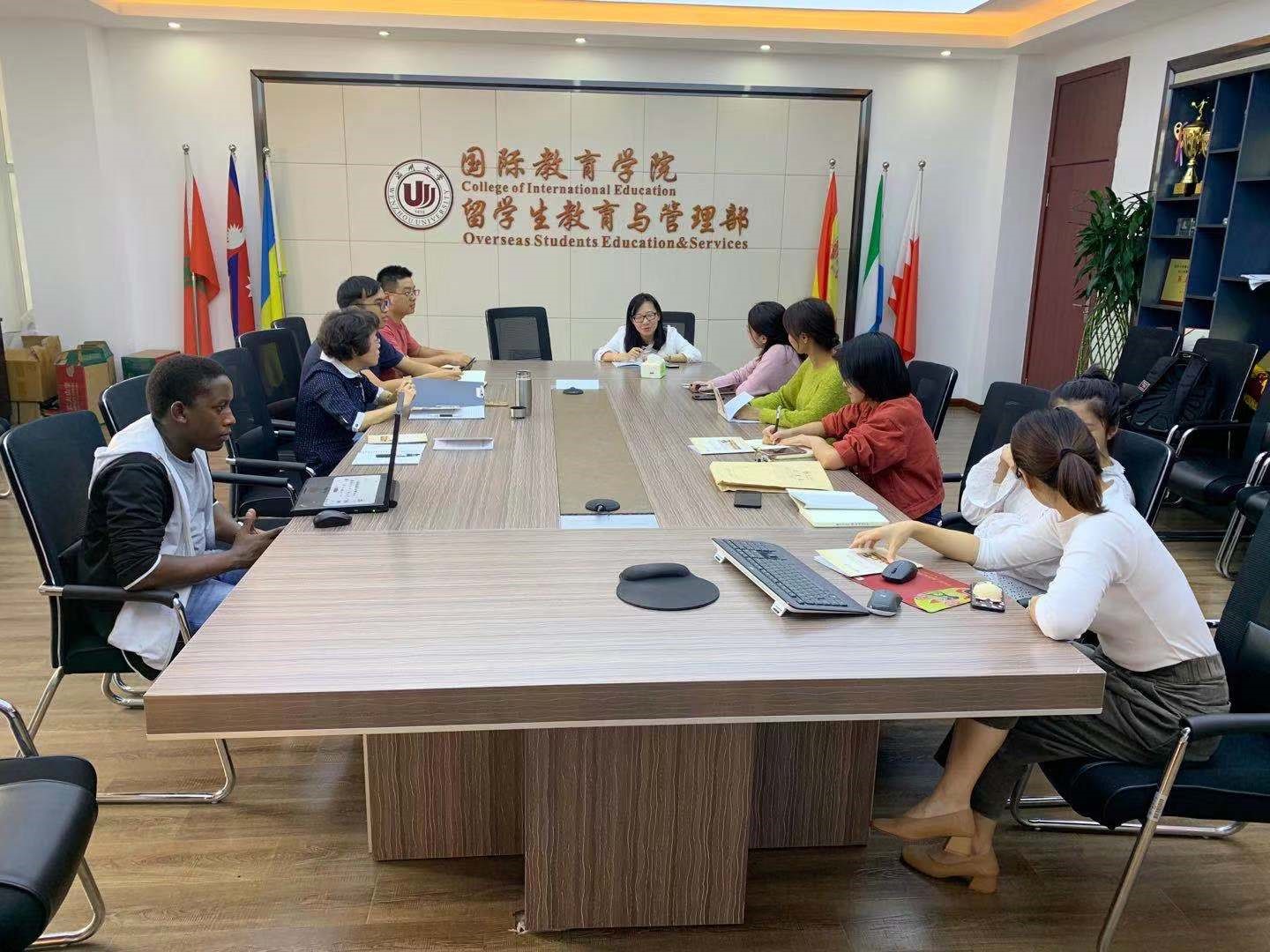 学生德育工作队伍的重要组成部分,是留学生教育和管理服务工作的主要实施者,是学生与教师、与学院联系和沟通的重要桥梁。她介绍了班主任的主要工作职责和班主任工作手册使用方法,说明了留学生班委建设的重要性,强调班主任需要开展法律法规、行为规范和安全教育,推进班级建设和学风建设,做好留学生的日常教育管理工作。随后,各新生班主任分别介绍了开学初班级的学风情况和思想动态,分享了班干部培养和活动组织等班级建设方面的经验。班主任金碧老师和徐丽丽老师就近期留学生请假管理办法和奖学金提出了相关建议,今后学院将优化相关办事流程,实现服务与管理提质增效。