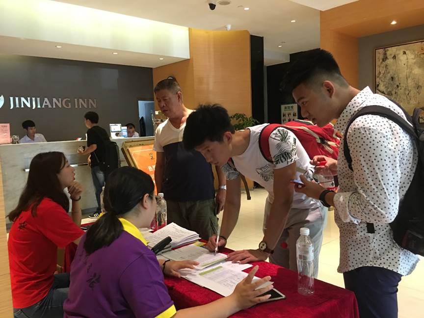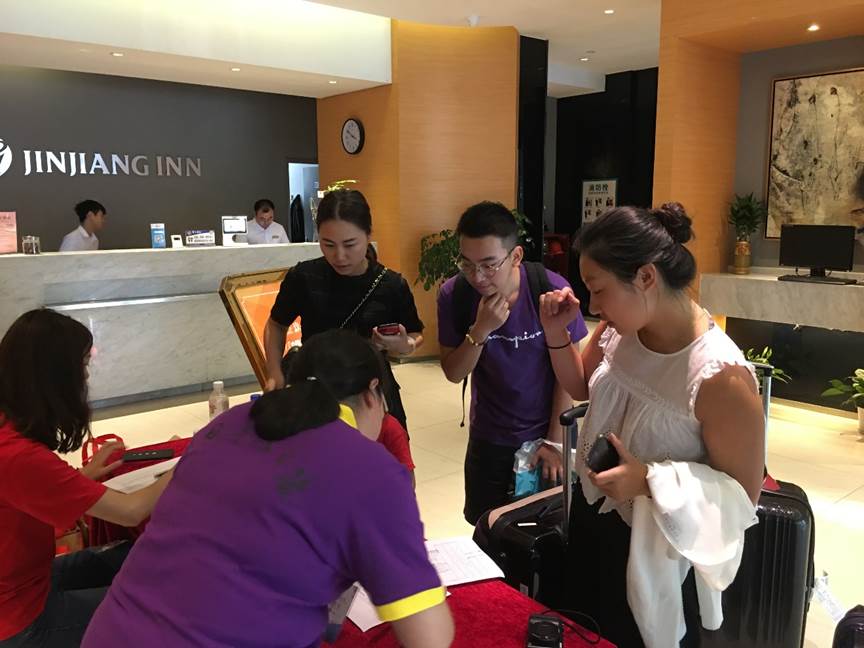 从早上9点开始,核对信息、上交复印件、住宿登记、拿资料袋,在工作人员的帮助下,营员们按照报到流程有序进行,有条不紊。直至晚上6点,60名学员顺利入住酒店,完成报到工作。