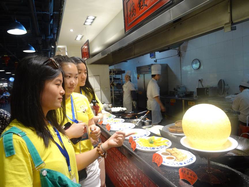 走进天一角“美食街”,抬头便可看见牌坊式的门厅,步入之后又能瞧见摆满瓯绣、瓯塑、竹丝镶嵌等非遗作品的展示区;平阳怀溪番鸭、瓯海盘香鳝鱼等瓯菜展示区,满满的“瓯式”风情。服务员将鱼丸、长人馄饨、灯盏糕等一听就有着温暖回忆的温州名小吃端上桌时,营员们都忍不住食指大动,争相品尝。他们一边品尝一边和大家分享自己知道的小吃的由来和风俗习惯。玲琅满目的特色美食令营员们应接不暇,大家都齐齐为这次温州特色美食点了一个大大的赞!