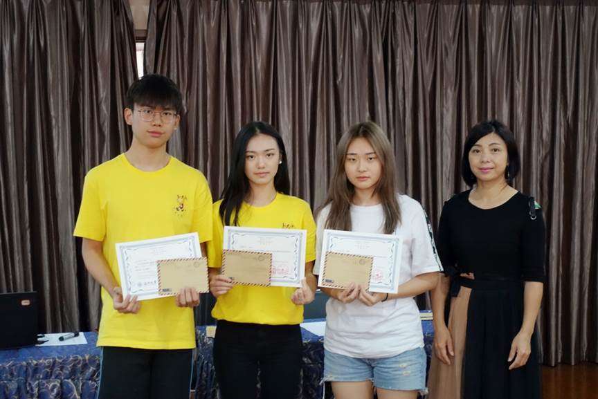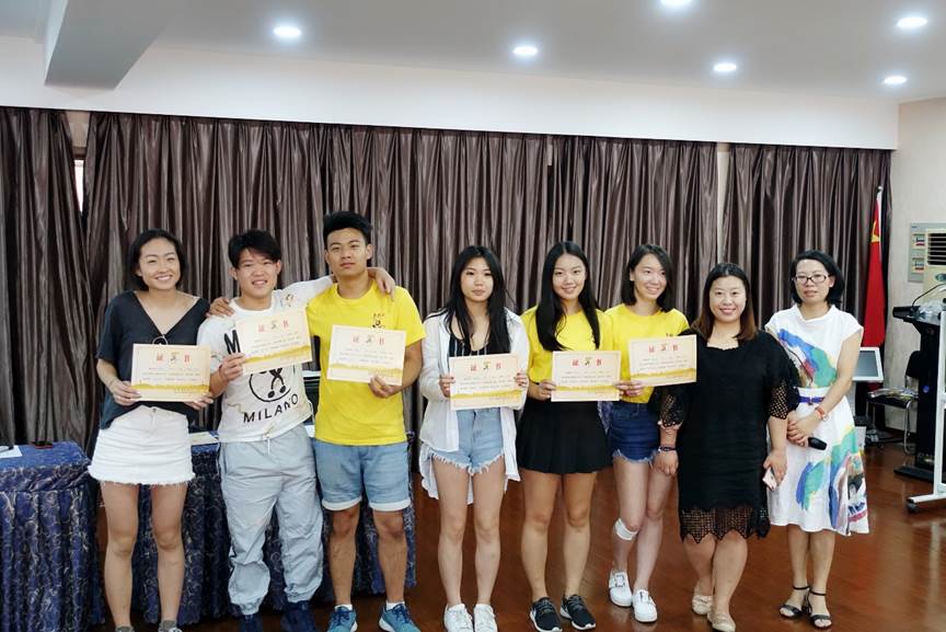 最后,严晓鹏、韩淑敏、包含丽以及郑婷4位老师一起为合格的青年商务营营员颁发结业证书以及荣誉证书和奖品。