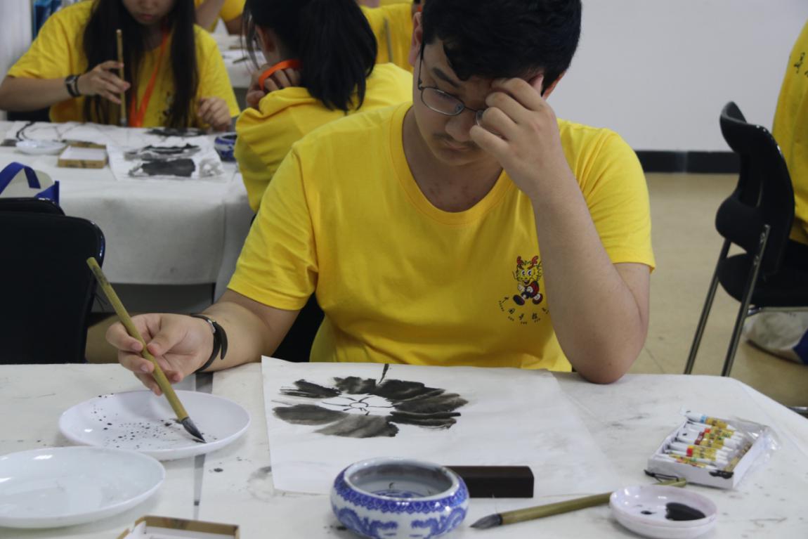 书法是中国传统文化不可或缺的一部分,更是华夏文明精髓的代表。营员们跟随老师学习书法的基本要领,从握笔姿势开始学起,到简单的笔画和汉字。虽然学习的时间短暂,可是营员们学得有模有样。来自美国的杨洋告诉记者:“来中国之前,我简单学习过汉语,不过今天是我第一次学习写毛笔字,这是一个让我享受的过程。书法是一门艺术,我越来越喜爱中国,喜爱传统文化。回到美国后,我不仅要继续写毛笔字,还要把它介绍给我的朋友,让他们也感受一下中国传统文化的魅力。”