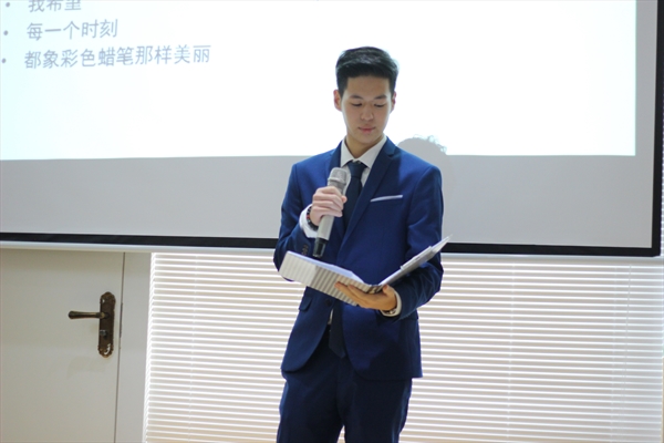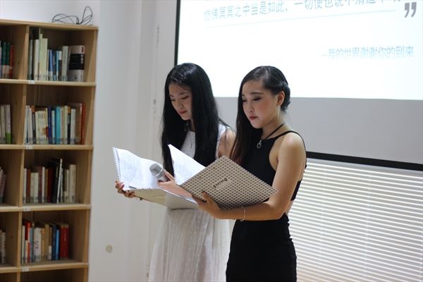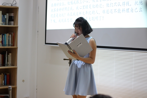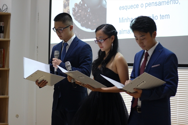 接着,来自葡萄牙的三位朗读者徐一晴、徐一凯和王锦洋特地带来一首葡萄牙诗歌《此刻我不知道我是谁》。三人感情细腻的葡萄牙语,配上流利悦耳的中文,让我们忘了自己是谁,沉醉在他们的朗读之中。“在全球化的时代,各国的文化也应该相互传播学习。”三人在朗读结束后说到他们希望葡萄牙文化和中国文化能够更好的交流融合,两国互相学习,加强沟通。