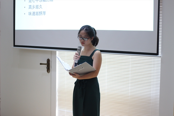 离开亲友,爱变成了思念;离开家乡,爱变成了乡愁。朗读者单清欣为大家朗诵了《我的乡愁》,单清欣充满感情的朗诵将离乡者对故乡浓烈的思念之情表现的淋漓尽致,唤起了在场许多华裔青少年当初离开中国的回忆。