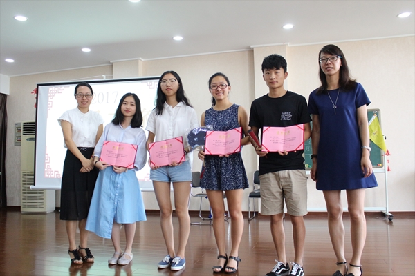 叶苗院长致辞,她们对今年华裔青年商务营丰富的活动内容和新颖的活动形式表示了肯定,对营员们在各项活动中的优异表现表示赞赏。致辞结束,包老师和叶院长为合格的青年商务营营员颁发结业证书,并为东方之美微信摄影大赛初赛、朗读者大赛、营地各类贡献奖获奖者以及优秀辅导员颁发证书。此外,郑老师还为大家建立了各国的温大校友群,便于大家今后的联系。