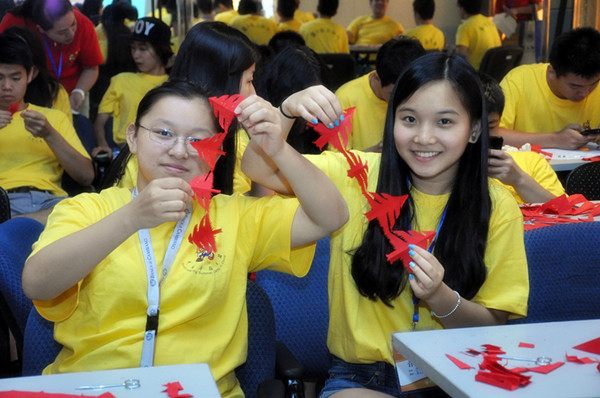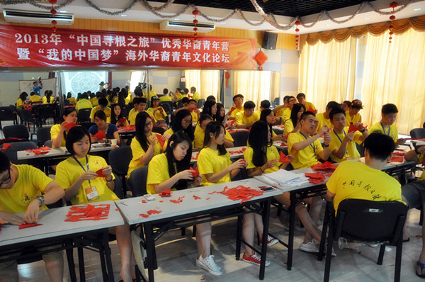 剪纸艺术,在中国有近两千年的历史,是民间艺术的一大瑰宝。在中国,剪纸与民风民俗有着密切的联系,贯穿着百姓生活的方方面面。为了让夏令营的华裔青年营员们了解剪纸艺术的历史、特点和用途,掌握基本的剪纸知识和技能,让营员们在动手中感受温州民间传统文化和民俗风情,优秀华裔青年营为营员们开设了一堂剪纸艺术课。