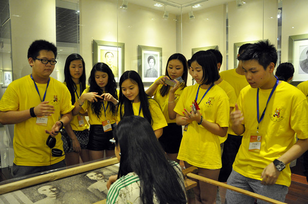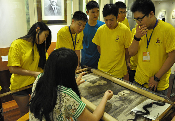 夏令营的营员们在研究所魏老师的带领下,参观发绣作品展示厅,了解发绣研究的发展历史,观赏精美绝伦的发绣作品,并观看了大师现场创作,真切地感受平凡的发丝在大师手下绣出生动人像的过程。