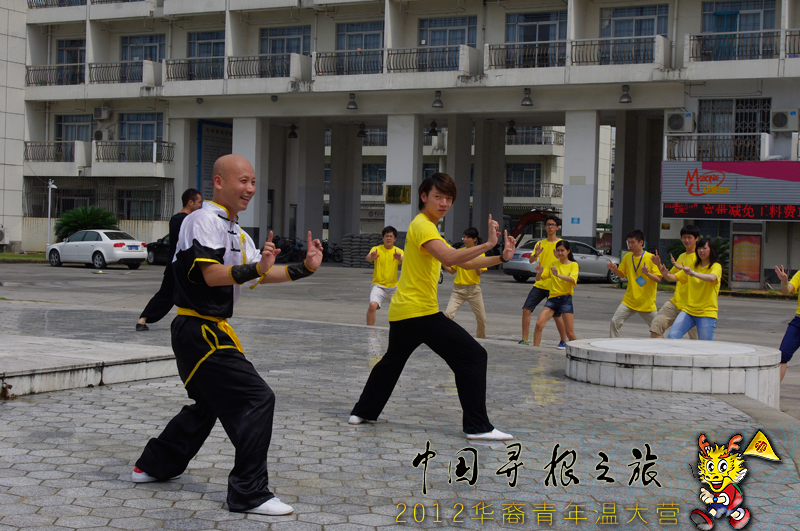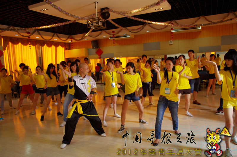 上空。木老师和徒弟一遍一遍耐心地教导后,有的营员已经记住了全部的动作,兴奋地跑到前台做示范。几遍下来,大家已经完全可以跟着老师的口号把整组拳打下来,木老师连连赞叹营员们有悟性,可以到海外继续习武,既锻炼身体,又传承发扬了中国功夫!