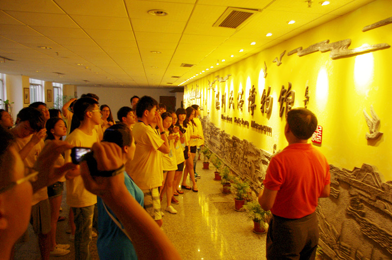 的民俗博物馆,聆听赖老师对各项展品的讲解。在民俗馆中,营员们对展厅里的每件器物都非常感兴趣,手中的相机拍个不停,来自荷兰的营员Danel从如厅开始就一直举着相机摄像,他说他要把这些美丽的温州记忆永远地珍藏。