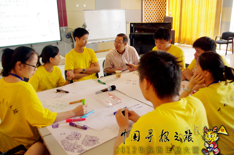 为2012中国“寻根之旅”海外华裔青年文化营的营员们开展了一场主题为“祖国语言文化与我的成长”的专题讨论课。