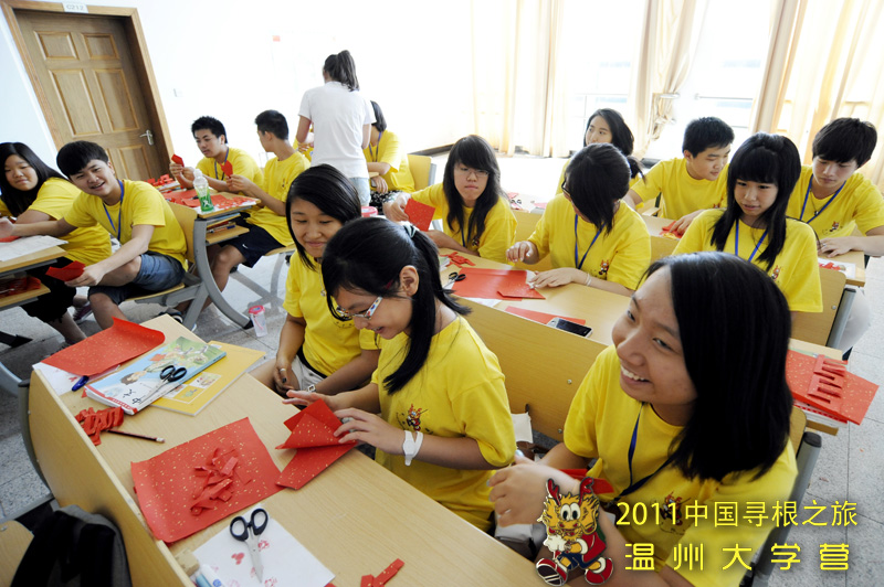 专家楼教室里,2011海外华裔青少年“中国寻根之旅”夏令营温大分营举办了一次别开生面的剪纸课。