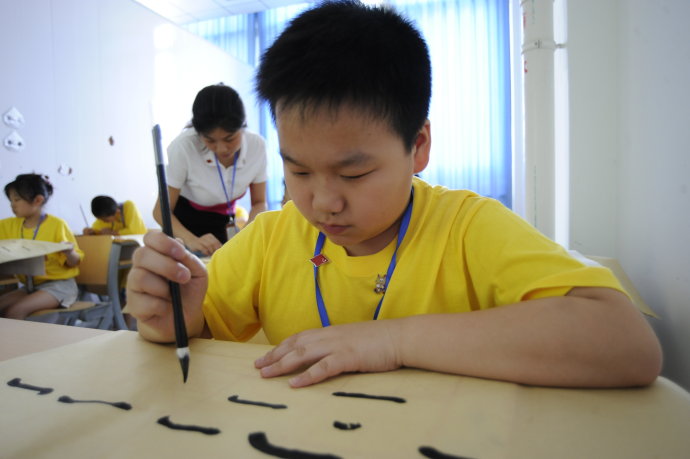 中文课上,虽然我很小,中文也不是很好,但是我很认真,学习态度很好地哦~