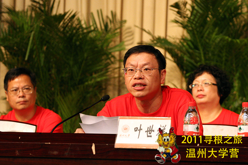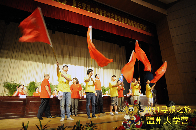 随后,意大利佛罗伦萨海外华文校长潘世立代表海外华文教师发言,表示要把中国文化向世界传播开来,做好中国文化传播掌旗人的工作!然后,温州市委常委、统战部部长余梅生代表温州市委、市政府领导对此次海外华裔青少年“中国寻根之旅”夏令营表示高度地重视,对温州海外华裔的“寻根”工作表示大力的支持。最后由浙江省侨办副主任邱国栋宣读此次夏令营正式开始,并对各个分营进行了授旗仪式,对第二批华文教育基地进行了授牌仪式。