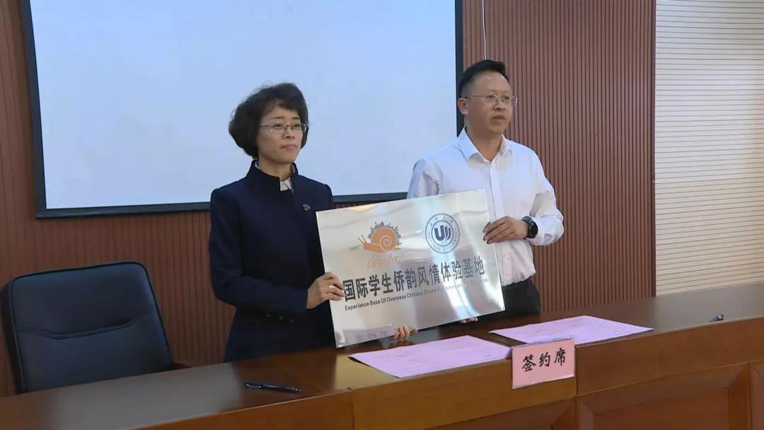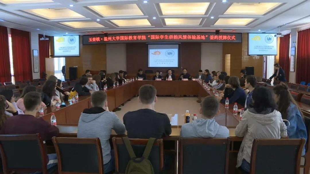 和侨韵玉壶•国际慢城进行了“国际学生侨韵风情体验基地”签约授牌仪式,并通过中英双文同声传译,详细了解玉壶的生态文化、历史文化、侨乡文化和慢城文化。