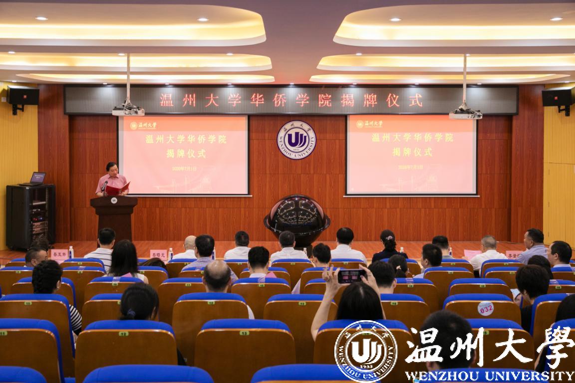 校长赵敏共同为华侨学院揭牌,市委统战部、丽岙街道、丽岙侨联、仙岩侨联相关领导参加揭牌仪式。