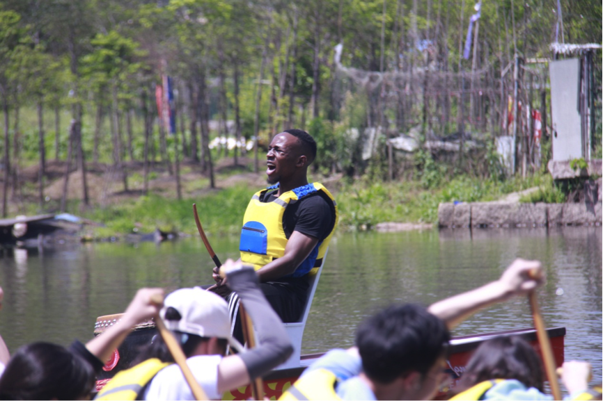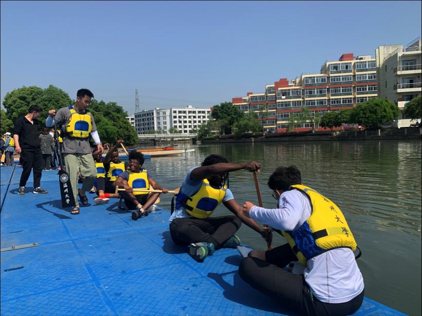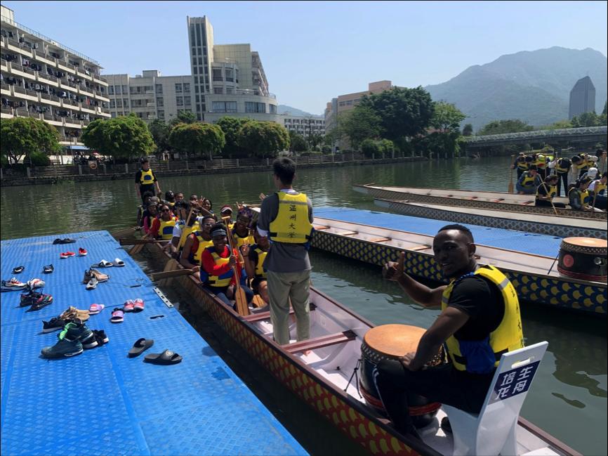 第一届校园龙舟赛。和别的队伍不同的是,这支队伍的13名队员分别来自来自津巴布韦、肯尼亚、赞比亚、尼日利亚等11个国家,是海角视频