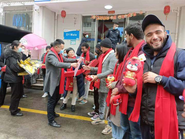 最后,校领导庄兴忠一行来到了留学生宿舍,将新年的问候送至每一位留学生。