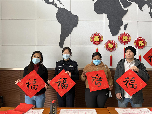 党委副书记庄兴忠、市教育局、瓯海出入境管理大队、茶山派出所、中国银行温州分行、学校相关部门负责人一起参与了活动,并将充满中国味的新年祝福送到每一位留学生手上。(吴铨铨)