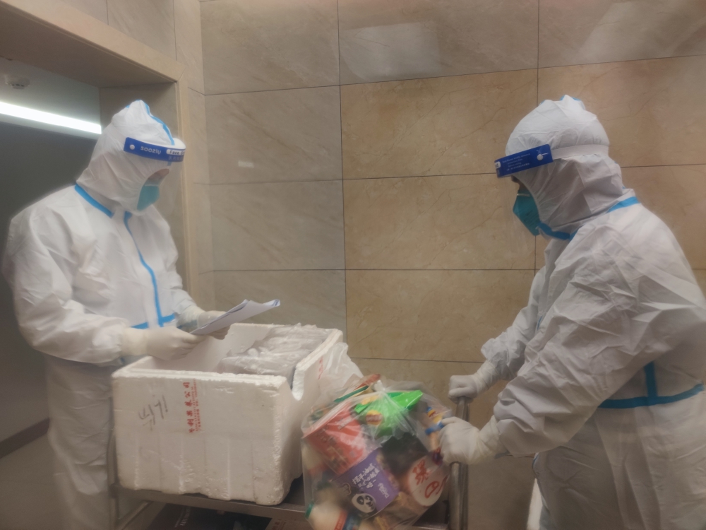 来自温州理工学院20级机械工程专业的俞江涛,便是其中的一位。去年临近年底,杭州富阳地区的疫情形势却更显严峻,但那时有不少工作人员已返乡过年,无法开展防疫工作。这时,身为富阳人的俞江涛毅然选择加入当地一个防疫临时党支部,主动配合隔离管控需要,在隔离点所在酒店与其他工作人员一起承担起防疫消杀、物资协同、后勤保障等相关工作。“最苦的就是开头那几天,因为人手不足,原本两三个人干的活全部一个人干;隔离人员抵达的时间也不固定,有时候半夜三四点抵达,我们也要立马穿戴好厚重复杂的防护服,把前来隔离的居民一步步安顿好,做好全面的检查和消杀工作才能回去睡觉。”回忆起在酒店隔离区工作的这段经历,俞江涛如是说。就这样,俞江涛每天平均工作17个小时,消杀十一层楼126个房间,负责50个房间的三餐送饭。