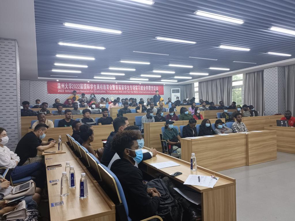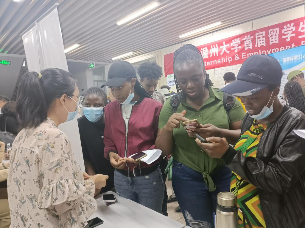 举行2022届国际学生离校教育会暨首届实习就业供需洽谈会,来自津巴布韦、埃塞俄比亚、坦桑尼亚等70多个国家的150余名该校国际学生参加。据悉,这也是温州市第一次专门针对国际学生举办的招聘会。