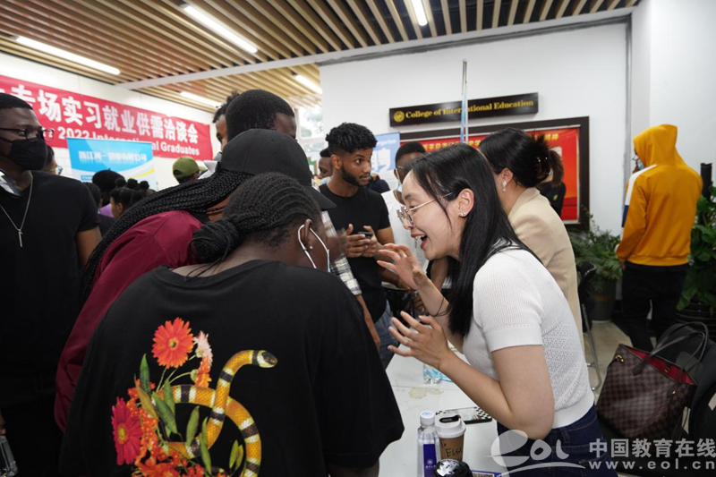 国际贸易专业大四学生,他非常感谢学校举办这样的专场招聘会,让国际学生不出校园就可以和用人公司面对面,寻找合适自己的就业机会。