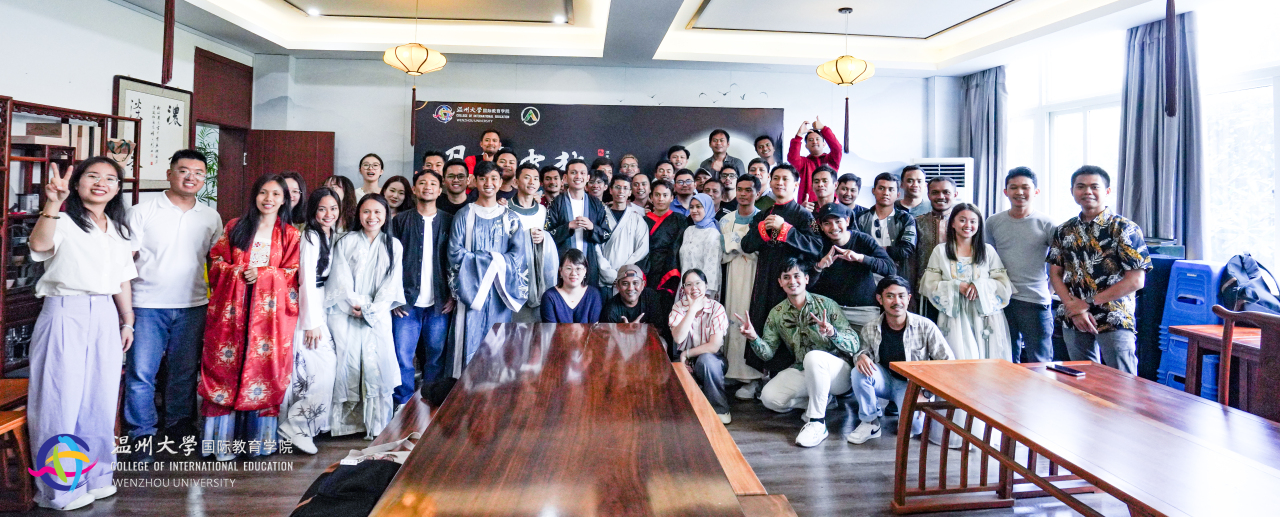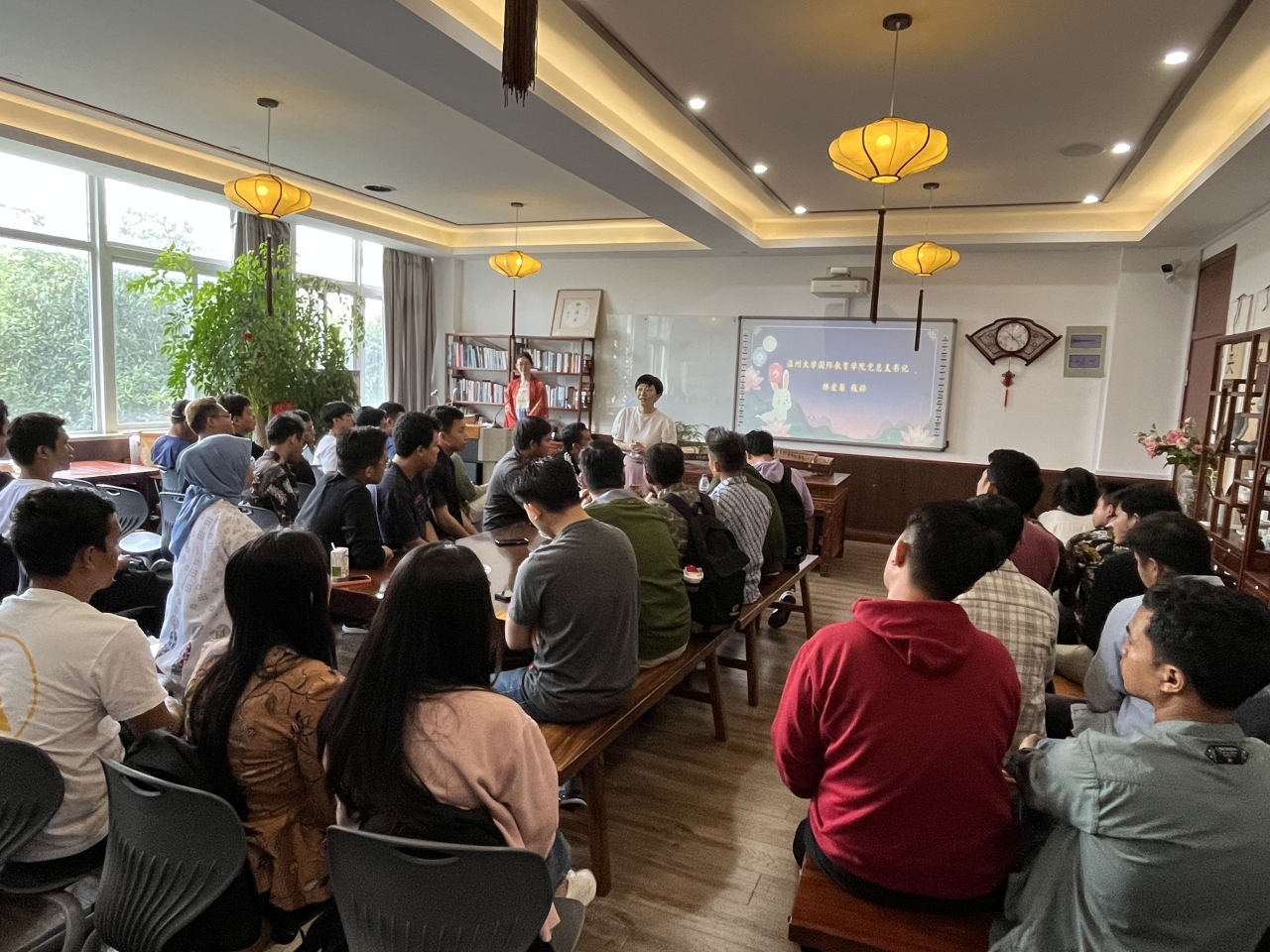 举行中秋文化体验活动,来自印度尼西亚的48名温大青山班学员与海角视频