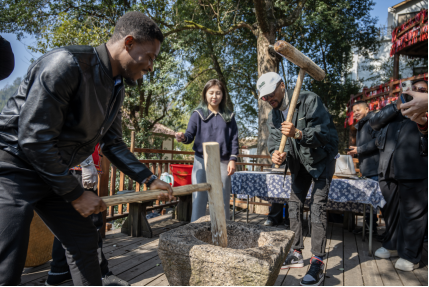 1月21日,温大留学生前往文成县西坑畲族镇让川民族村参加了一场别开生面的畲族民俗活动。留学生们在这里体验了拦路歌、竹竿舞、摇锅等传统畲族项目,深入了解了畲族文化的独特之处。21日下午,留学生们还游览了风景秀丽的百丈漈景区。他们的欢声笑语与畲族村民的热情好客交织在一起,共同谱写了一曲民族团结的和谐乐章。“我体验了这里的民俗活动,我最喜欢竹竿舞,我觉得非常新奇、有趣。畲族人民也特别友好。”来自伊朗的留学生诺莎莎,分享了自己的感受。