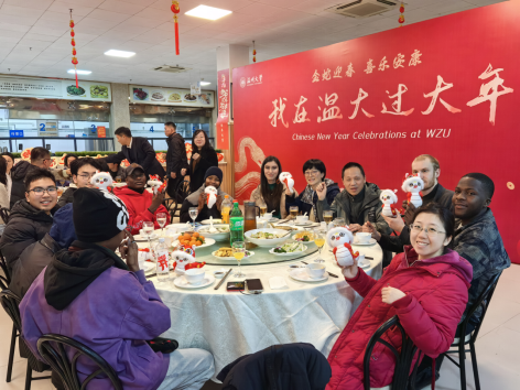 副校长王舜,有关部门、学院负责人与留校师生欢聚一堂,共同迎接新春佳节的到来。留学生们在品尝美味的同时,也感受到了来自学校的温暖与关怀。王舜副校长与留学生亲切交谈,了解他们的学习情况,他希望留学生学好中文,来年再接再厉,学业蒸蒸日上。