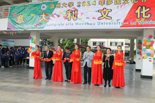 开幕式上,温大师生享受到一场意大利风味的饕餮盛宴,芝香浓郁的披萨、精致诱人的甜点、正宗地道的意大利葡萄酒和饮料,并在品尝美酒佳肴的同时欣赏意大利友人的精彩表演,参与现场互动。