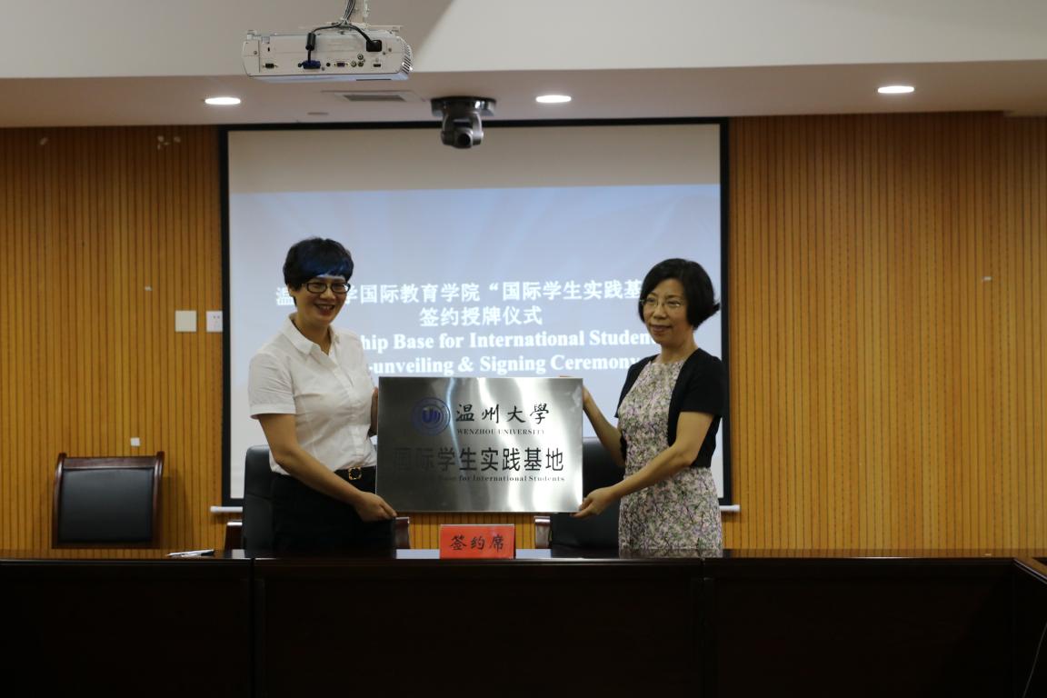 “国际学生实践基地”牌。她对文成县、文旅产业学院为国际学生搭建交流平台、提供实践机会表示感谢。她介绍了海角视频