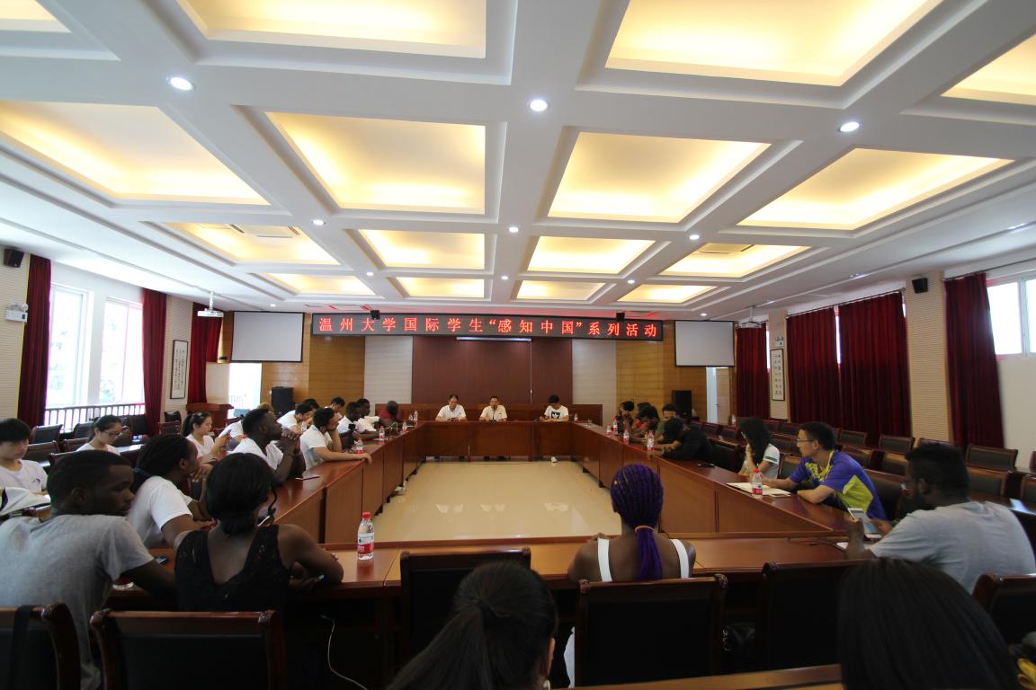 (留管部)的有关情况。她认为此次“感知中国”系列活动之“文旅”之行暑期社会实践活动非常有意义,一是通过文化体验和走访归国华侨活动,国际学生能够更好地了解文成深厚的文化底蕴和旅游资源;二是在实践调研中,国际学生通过实践报告、英语散文、网络直播以及宣传短视频等方式向更多的海外人士宣传文成、推广文成;三是通过社会实践,国际学生能更加了解中国社会、了解中国国情,实践是“感知中国、感知浙江、感知温州”的有效载体。