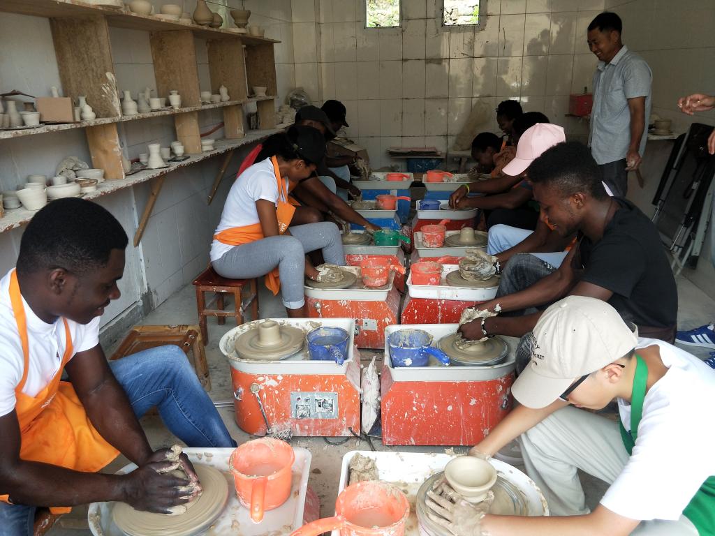 国际学生体验了瓯瓷拉坯制胎技术和手工捏陶。在浙疆青瓷-瓯窑小镇体验厅,国际学生们经过制陶师傅的耐心指导,迅速地掌握了相关的制陶技巧。经过2个多小时候紧张又刺激的制陶体验,眼镜蛇、非洲象、蜘蛛、非洲碗等带有异域风情特色的生坯作品生动地呈现出来,学生们看到自己及同伴的作品虽显粗糙,但是创意十足,尤其听说自己的作品将经过烧制后送到自己手中,他们异常兴奋。来自坦桑尼亚的Janeth说,今天的文化体验活动让自己对瓯文化有了进一步的了解,特别是手工拉坯体验环节激发了自己对瓯陶的兴趣,感谢海角视频