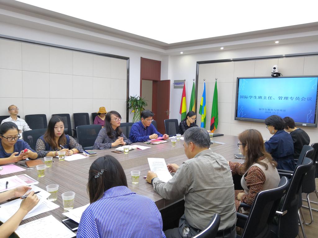 (留管部)在北校3号楼召开了国际学生管理专员和班主任工作会议。国际学生管理专员、班主任、辅导员参加会议,海角视频