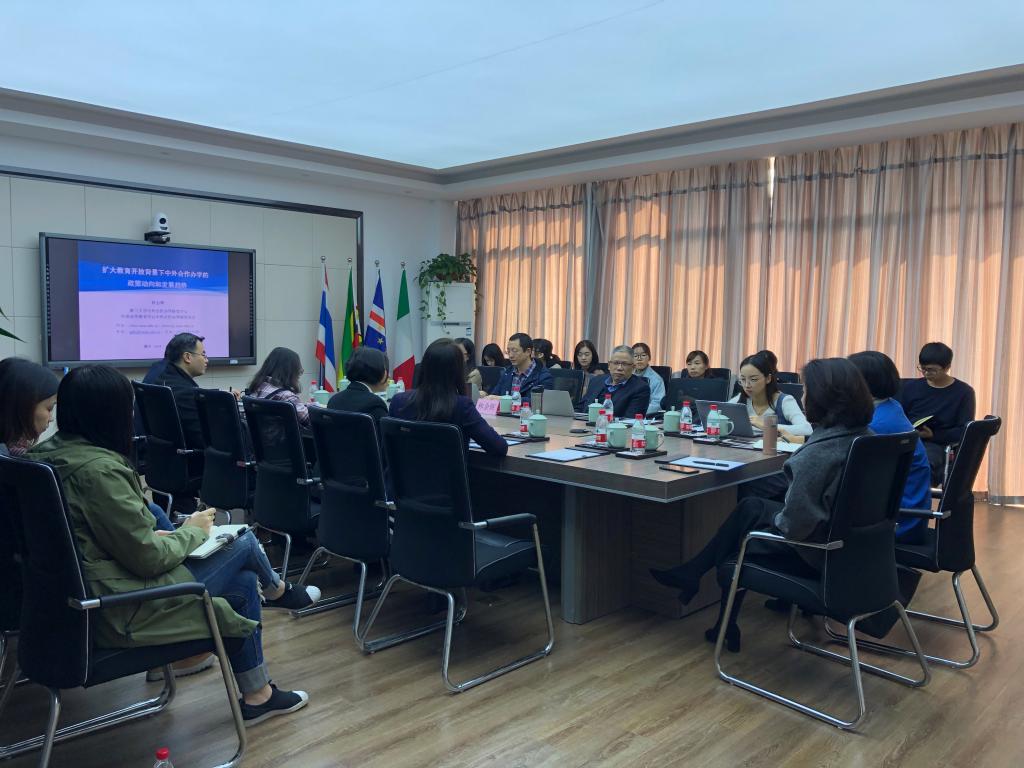 ,以《扩大教育开放背景下中外合作办学的政策走向和发展趋势》为题开展讲座,国际处、团委、人文社科处、意大利分校、瓯江学院及其他相关学院的老师们参加。