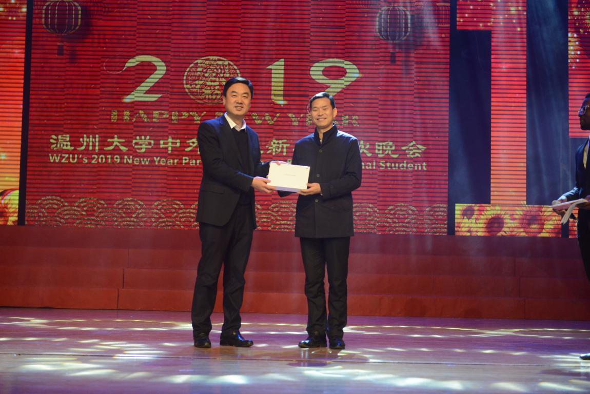 的项逸君老师多才多艺,深情款款地演唱了一首《All of Me》,唯美的画面与美妙的歌声融为一体。中国学生詹怡婷和来自津巴布韦的CHITOMBO PATIENCE CHIPO、尼日利亚的ANIEKE IFEANYI DAVID等7名学生为在场观众演唱《We Are The World》,引起在场中外师生的共鸣。晚会当然也少不了传统民族舞和武术表演。教师教育学院的学生们表演了《律》、《月亮谣》等精彩的传统舞蹈,校武术队的学生们在周义义老师带领下分别演绎舞龙、太极剑、醉拳、双手剑、南拳、破棍等,酣畅淋漓的表演又一次推动晚会进入高潮。尼日利亚籍学生SUGH EMMANUEL TERVER说,“舞龙表演很神奇,我第一次看到这么精彩的中国功夫,我真的很喜欢他们的表演。”晚会最后,副校长钱强抽取终极大奖,并为幸运观众何毅老师颁奖。