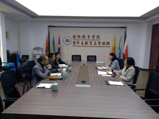 国际化环境布局。随后座谈会上,叶苗就我校国际化办学情况、国际学生招生和管理服务、国际化课程建设、留学生教育与管理部职能、学院相关科室人员配置、师资队伍建设等方面做了介绍。陈文远就学生公寓管理、签证管理等常规工作与对方进行经验交流。