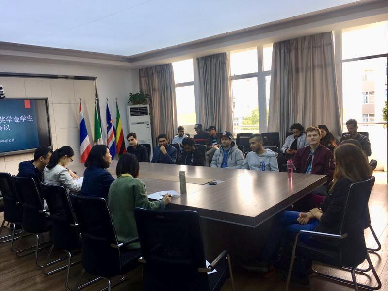 会上,谢坚老师通报了中国政府奖学金学生在校的学业表现、日常和公寓行为表现。钱江潮老师宣讲了中国法律和校纪校规,再次强调了非法打工、宗教活动、课程考勤以及校内外住宿安全等规定。与会学生还与老师们就学习、生活方面的困难和意见进行了互动交流。