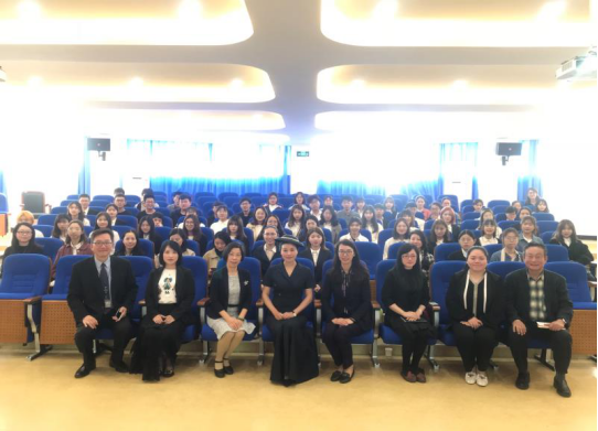 傅老师从微笑、握手、鞠躬、递接名片、相遇礼仪、介绍礼仪、电话礼仪、称呼礼仪等不同方面向我们详细介绍了社交礼仪的要点。期间,傅老师与师生们进行幽默有趣的互动,不仅邀请个别同学上台进行礼仪细节的示范并对其进行耐心指导,也让师生们随着讲座不时进行实地操练,让大家切身感受到商务礼仪重在平时的实践。